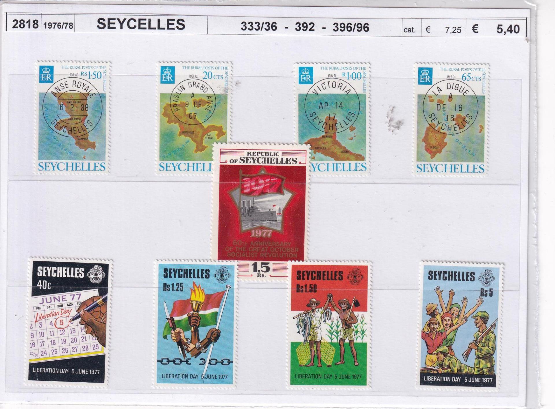Varie emissioni_ Le Isole Seychelles; !917-1977 anniversario Rivoluzione Russa; 5 giugno 1977 Giorno della Liberazione