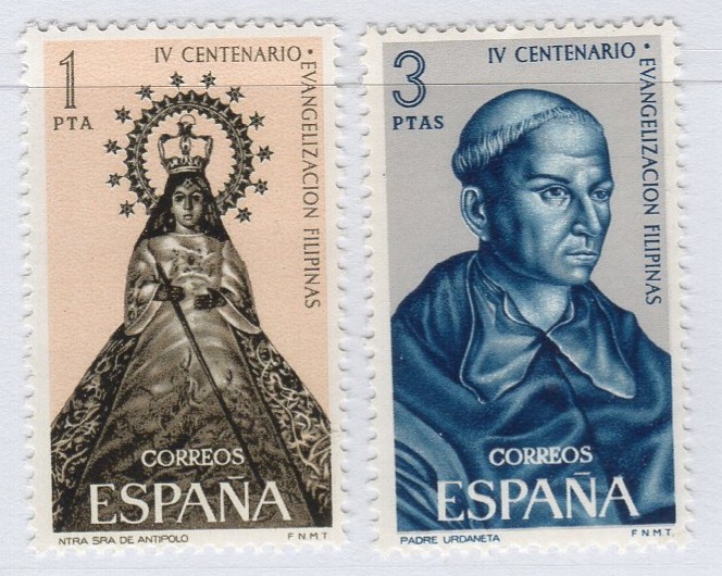 Francobolli Spagna Anno 1965 Quarto centenario dell’Evangelizzazione delle Filippine