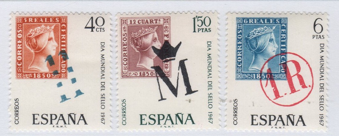 Francobolli Spagna Anno 1967 Giornata mondiale del francobollo del 1850 e annulli