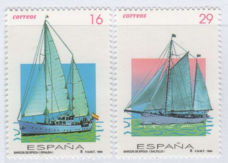 Francobolli Spagna Anno 1994 Velieri di Don Juan de Bourbon Conte di Barcellona (cat. n. 2905-2906)