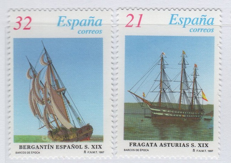 Francobolli Spagna Anno 1997 Velieri spagnoli d’epoca Terza serie (cat. n. 3052-3053)