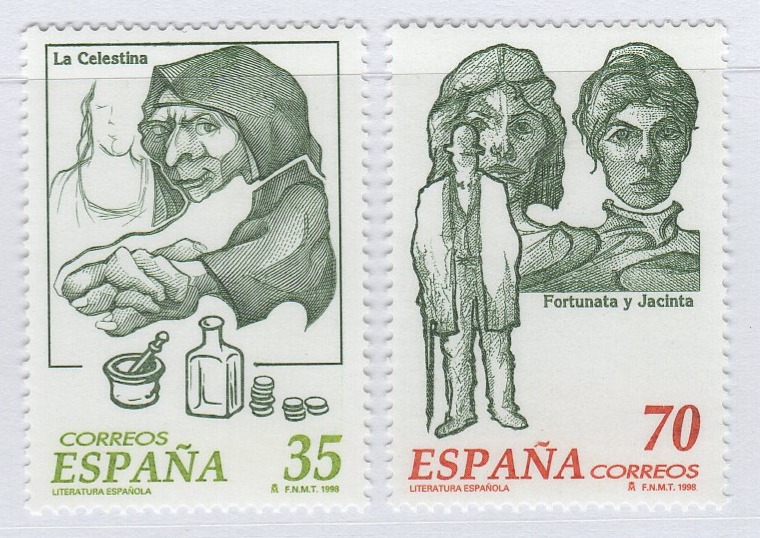 Francobolli Spagna Anno 1998 Letteratura spagnola Fernando de Rojas e Benito Peréz Galdo (cat. n. 3113-3114)