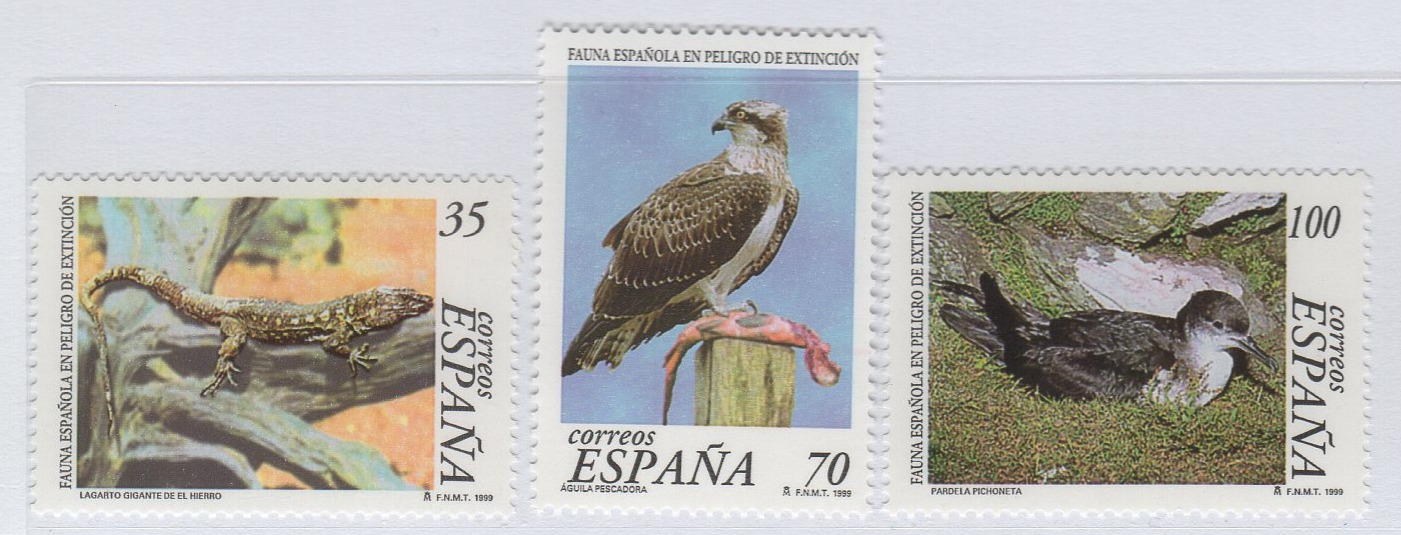 Francobolli Spagna Anno 1999 Fauna spagnola in pericolo di estinzione (cat. n. 3183-3185)