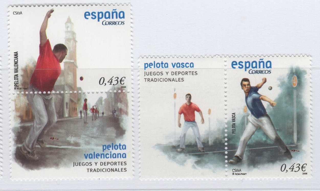 Francobolli Spagna Anno 2008 Giochi e sport tradizionali Stampato con appendice (cat. n. 4048-4049)