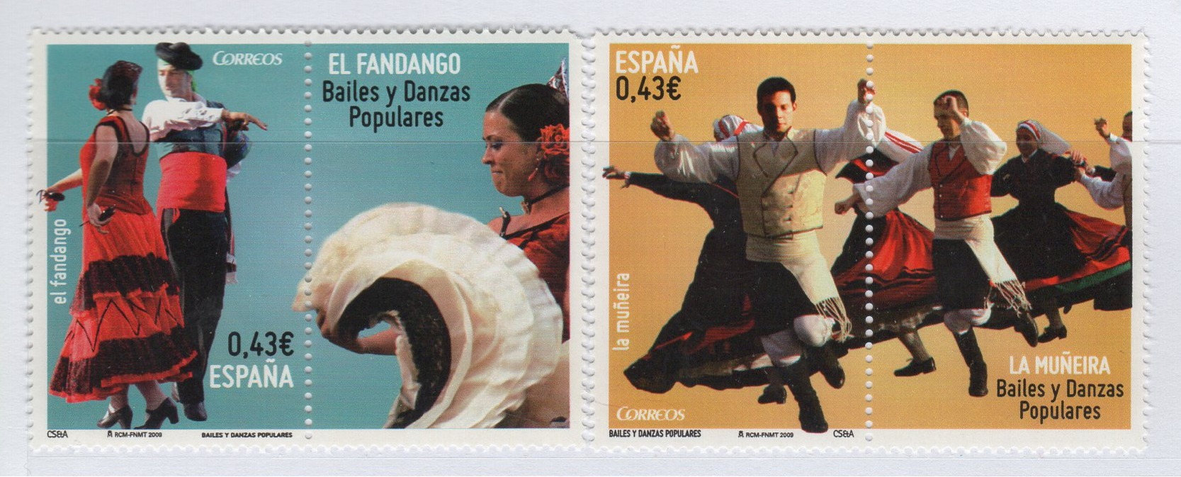Francobolli Spagna Anno 2009 Danze tradizionali Quinta serie Con appendice (cat. n. 4169-4170)