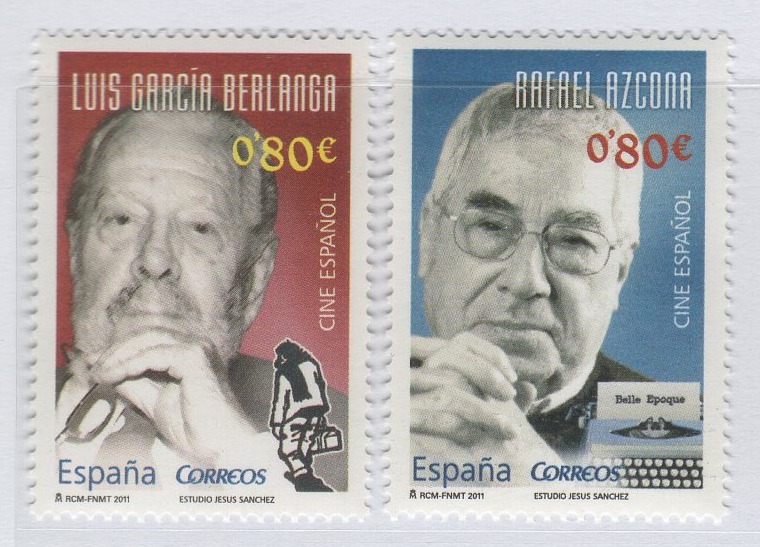 Francobolli Spagna Anno 2011 Cinema spagnolo Luis Garcia Berlanga regista e Rafael Azcona sceneggiatore (cat. n. 4350-4351)