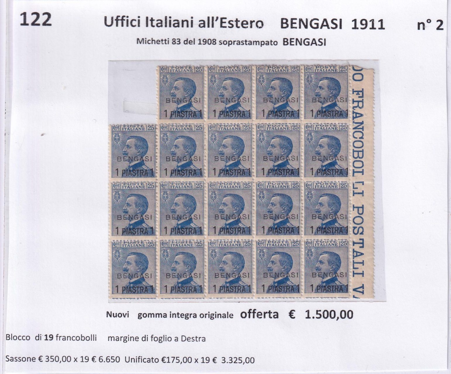 Centesimi 25 azzurro Serie Michetti del 1908 Soprastampati Bengasi 1 Piastra 1
