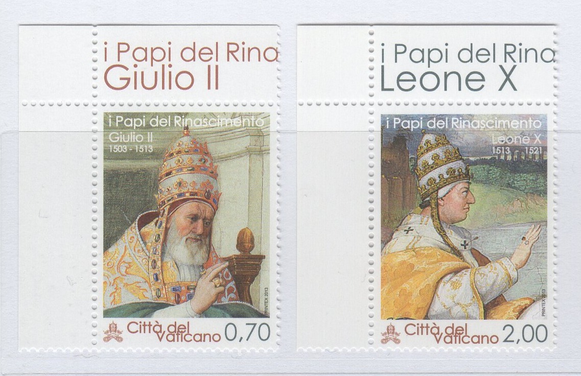 Francobolli Vaticano Anno 2013 I Papi del Rinascimento Cinquecentenario della nascita di Papa Giulio II e cinquecentenario dell’elezione di Papa Leone X