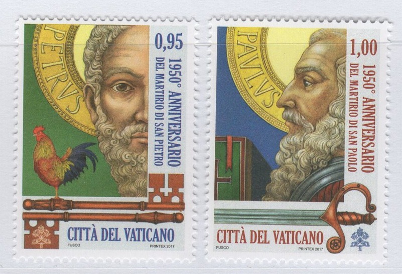 Francobolli Vaticano Anno 2017 1950esimo anniversario del martirio di San Pietro e di San Paolo