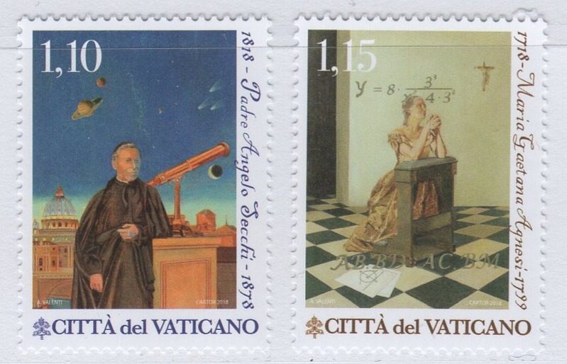 Francobolli Vaticano Anno 2018 Scienza e fede Bicentenario della nascita di Padre Angelo Secchi e terzo centenario della nascita di Maria Gaetana Agnesi