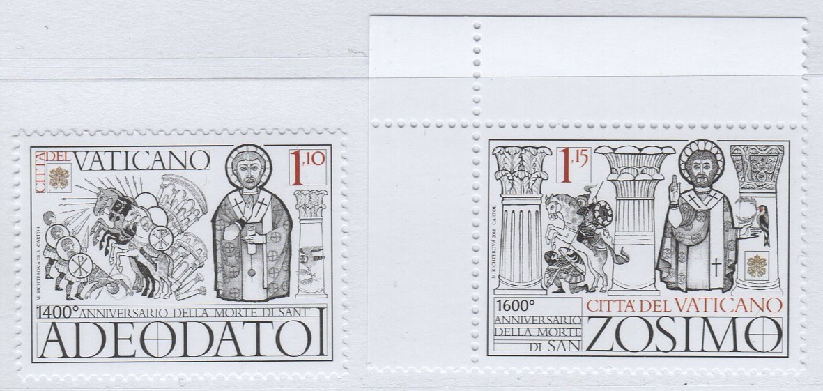 Francobolli Vaticano Anno 2019 Papi e Santi 1400esimo anniversario della morte di Sant’Adeodato e 1600esimo anniversario della morte di San Zosimo
