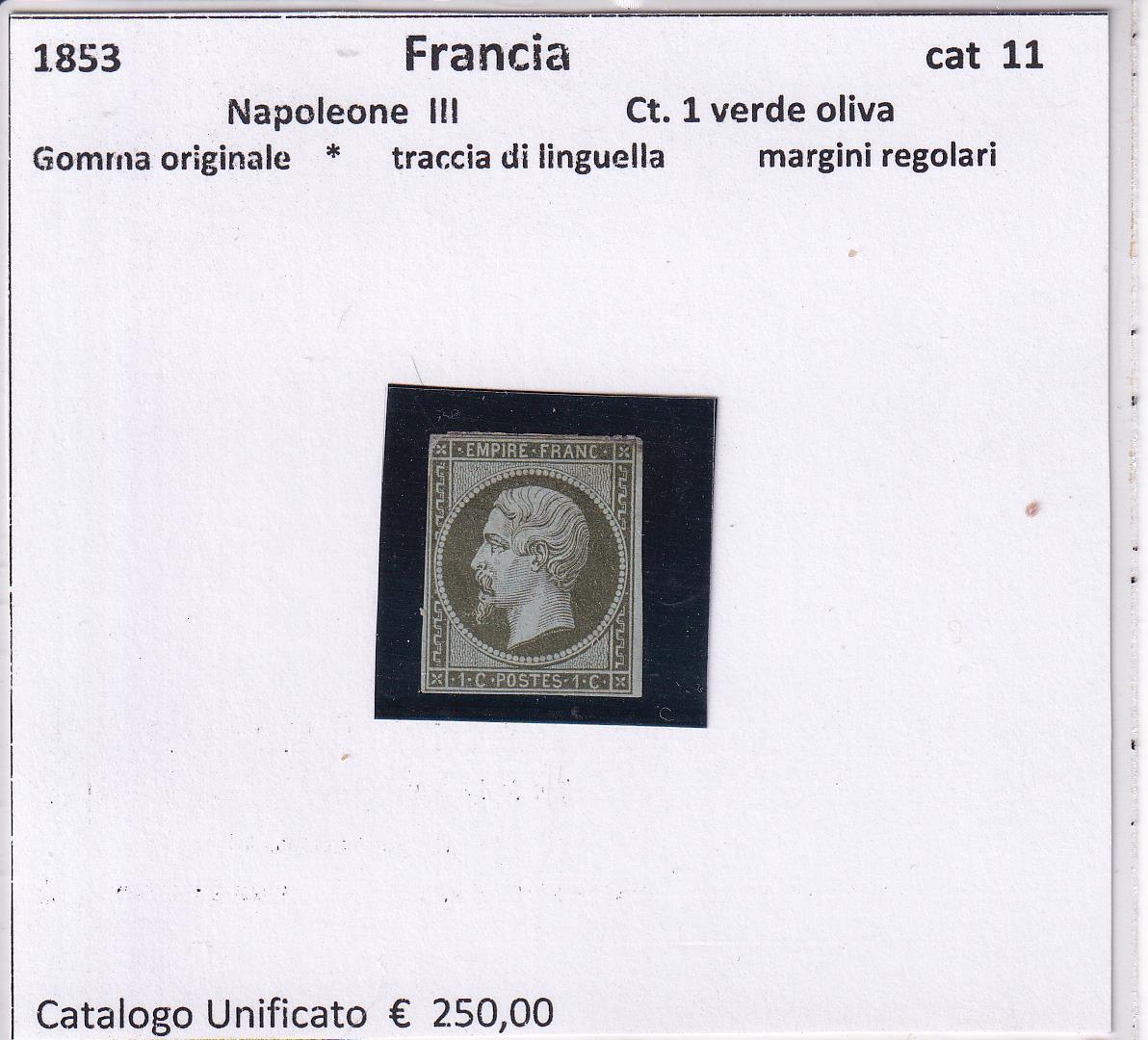 Effigie dell’Imperatore Napoleone III Centesimi 1 verde oliva
