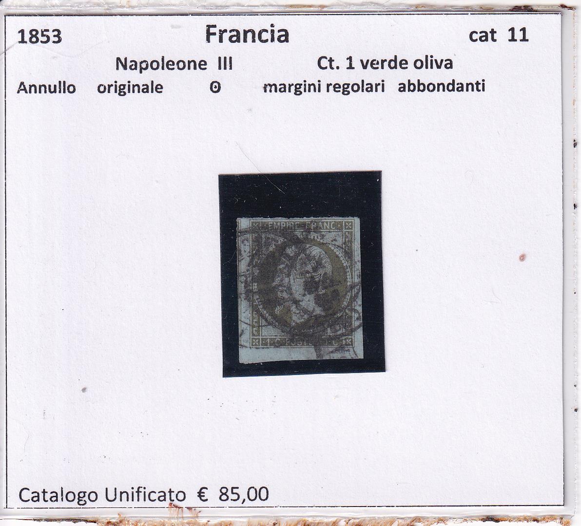 Effigie dell’Imperatore Napoleone III Centesimi 1 verde oliva