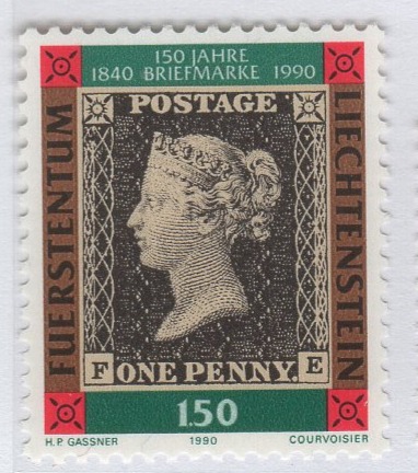 Francobollo Liechtenstein Anno 1990 150esimo anniversario del primo francobollo
