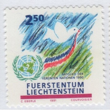 Francobollo Liechtenstein Anno 1991 Adesione all’ONU