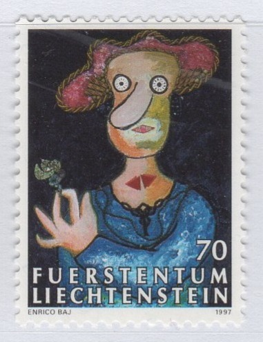 Francobollo Liechtenstein Anno 1997 Omaggio al Liechtenstein Quarta serie Opera del pittore Enrico Baj