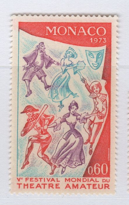 Francobollo Monaco Anno 1973 Quinto festival mondiale del teatro dei dilettanti