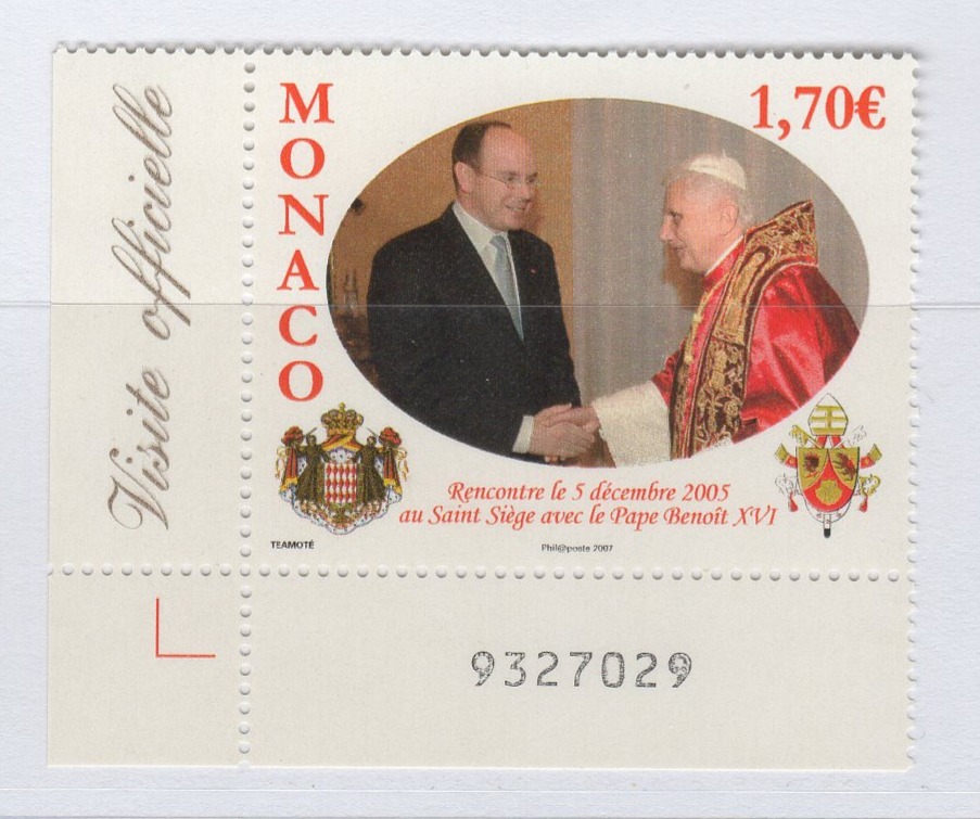 Francobollo Monaco Anno 2006 Visita del Principe Alberto II a Papa Benedetto XVI