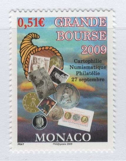 Francobollo Monaco Anno 2009 Grande Bourse Borsa nazionale di filatelia e numismatica