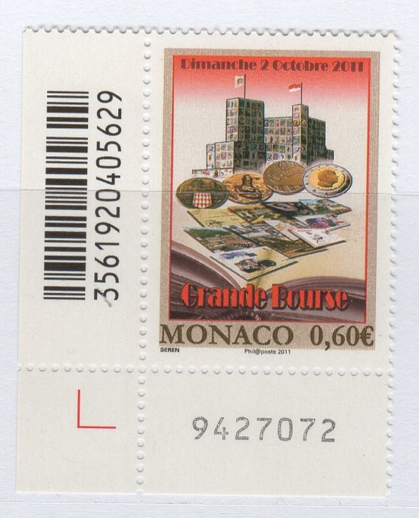 Francobollo Monaco Anno 2011 Grande Bourse Borsa filatelica e numismatica