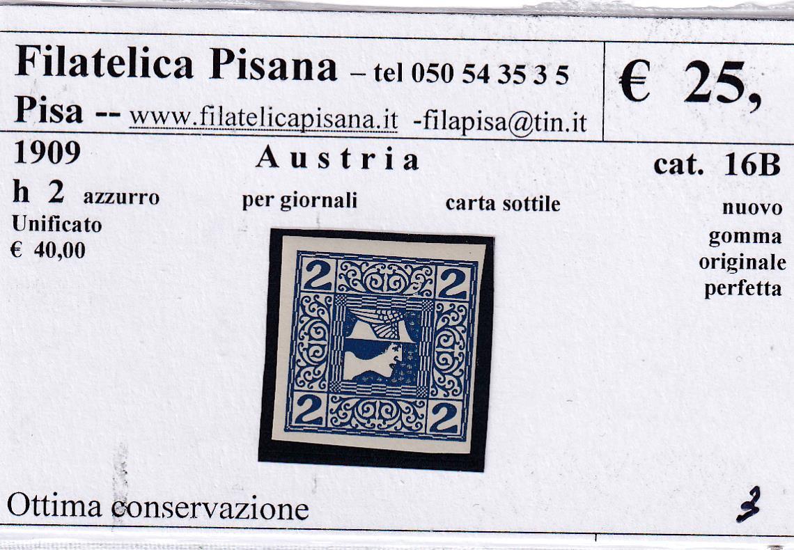 Francobollo per giornali Austria – Anno 1909 Heller 2 azzurro