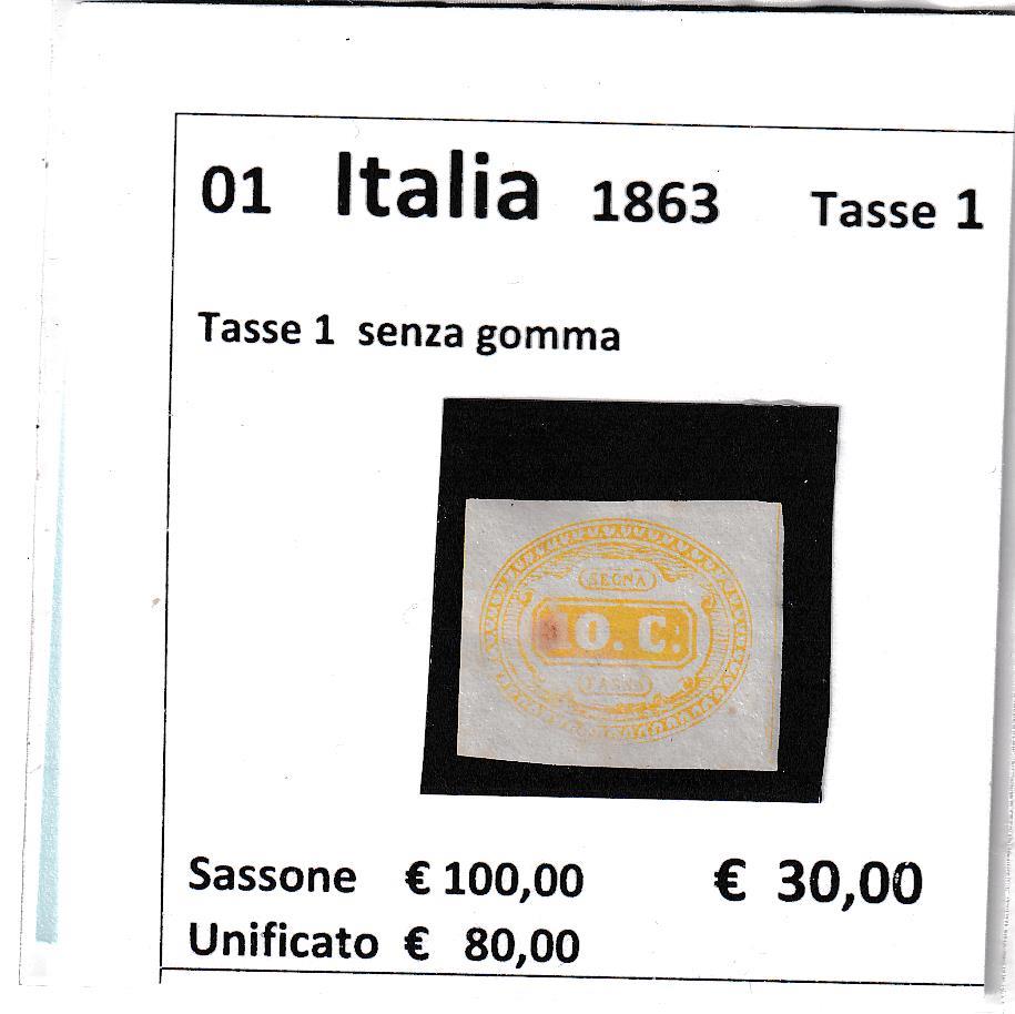 Francobollo Regno d’Italia Anno 1863 Segnatasse Cifra in contorno ovale Centesimi 10 giallo (cat. n. 1)