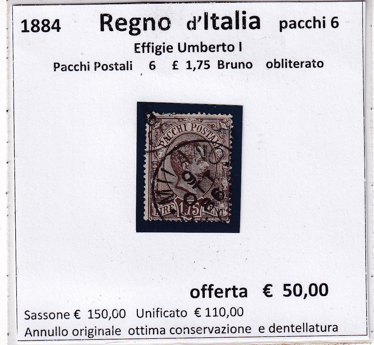 Pacchi Postali Effigie Umberto I Lire 1,75 bruno