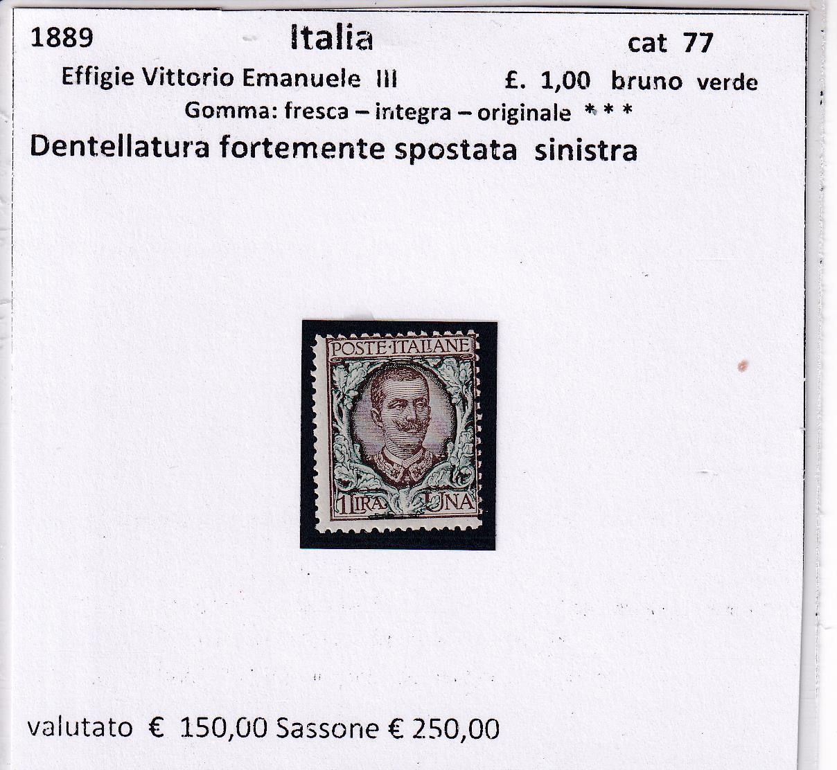 Serie Floreale Effigie Vittorio Emanuele III Lire 1 bruno verde