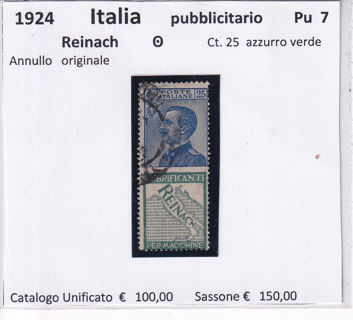 Francobollo Regno d’Italia, Anno 1924, Serie Francobolli Pubblicitari Reinach Centesimi 25 azzurro verde (cat. n. 7)