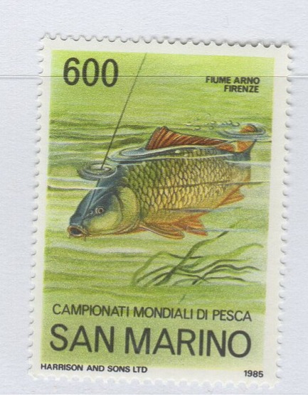 Francobollo San Marino Anno 1985 Campionati mondiali di pesca Firenze