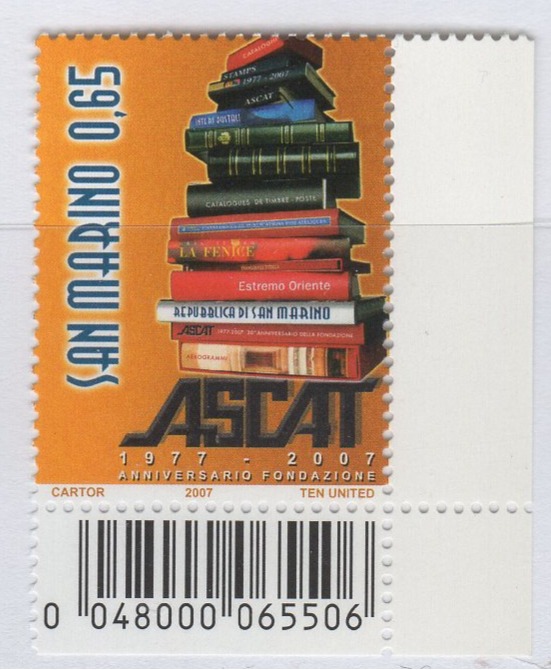 Francobollo San Marino Anno 2007 30esimo anniversario dell’Associazione Internazionale degli editori di Cataloghi filatelici, di Album e di Pubblicazioni filateliche ASCAT