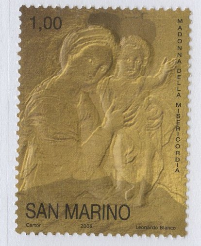 Francobollo San Marino Anno 2008 Verso le Origini Bassorilievo di Leonardo Blanco realizzato per la Basilica dell’Annunciazione di Nazareth