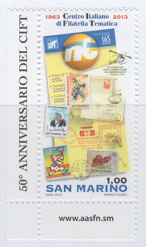 Francobollo San Marino Anno 2013 Cinquantenario del Centro Italiano di Filatelia Tematica CIFT