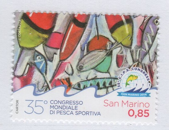 Francobollo San Marino Anno 2014 35esimo congresso mondiale della Confederazione Internazionale Pesca Sportiva