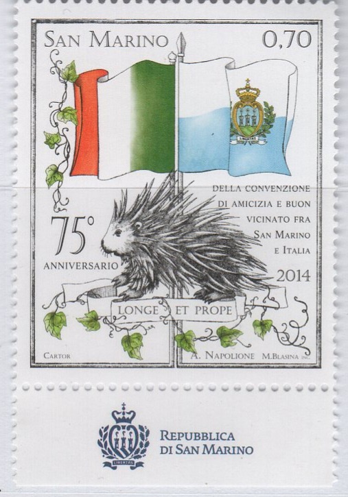 Francobollo San Marino Anno 2014 75rsimo anniversario della convenzione di amicizia e buon vicinato con l’Italia del 31 marzo 1939