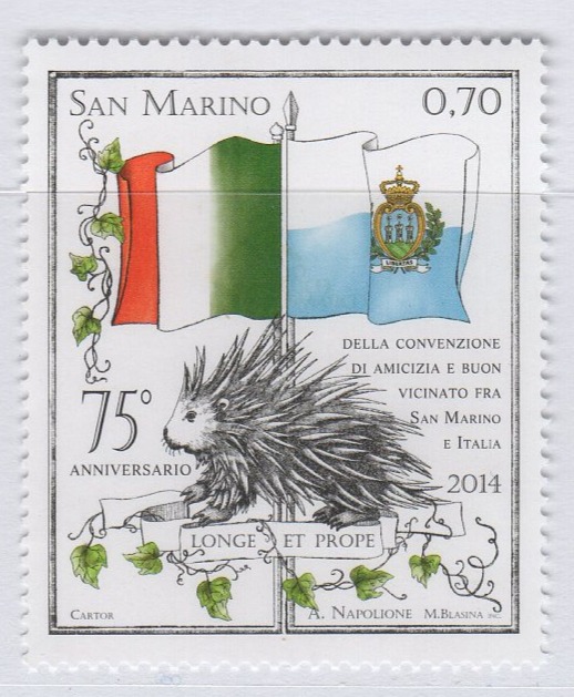 Francobollo San Marino Anno 2014 75rsimo anniversario della convenzione di amicizia e buon vicinato con l’Italia del 31 marzo 1939