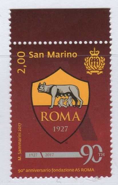 Francobollo San Marino Anno 2017 90esimo anniversario della fondazione della A. S. Roma