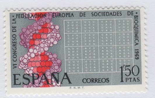 Francobollo Spagna Anno 1969 Sesto Congresso Europeo di Biochimica
