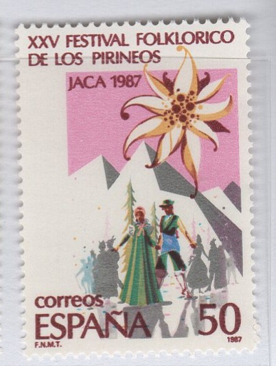 Francobollo Spagna Anno 1987 25esimo festival folkloristico dei Pirenei