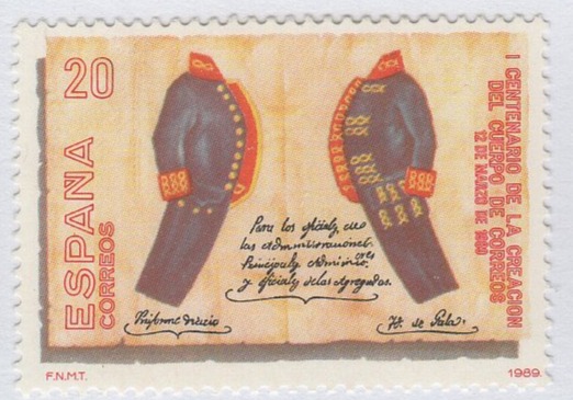 Francobollo Spagna Anno 1989 Centenario della creazione del Cordo postale (cat. n. 2614)