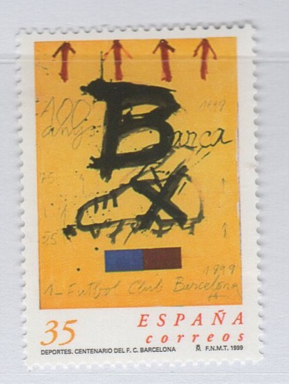 Francobollo Spagna Anno 1999 Centenario della società calcistica FC Barcelona (cat. n. 3190)