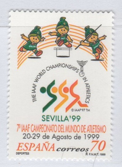 Francobollo Spagna Anno 1999 Settimi campionati mondiali di atletica leggera Siviglia (cat. n. 3195)