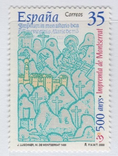 Francobollo Spagna Anno 2000 Quinto centenario della tipografia del Convento di Monserrat (cat. n. 3263)