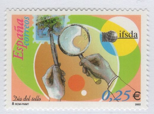 Francobollo Spagna Anno 2002 Giornata del francobollo Cinquantenario della Federazione Internale delle Associazioni dei commercianti filatelici IFSDA (cat. n. 3467)