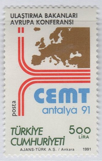 Francobollo Turchia Anno 1991 Conferenza dei Ministri europei dei trasporti CEMT Antalya