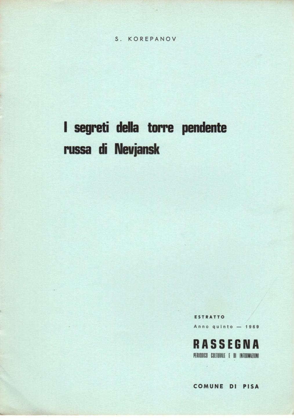 Korepanov S., I segreti della torre pendente russa di Nevjansk, Estratto Rassegna. Periodico Culturale e di Informazioni. Anno quinto – 1969, Comune di Pisa