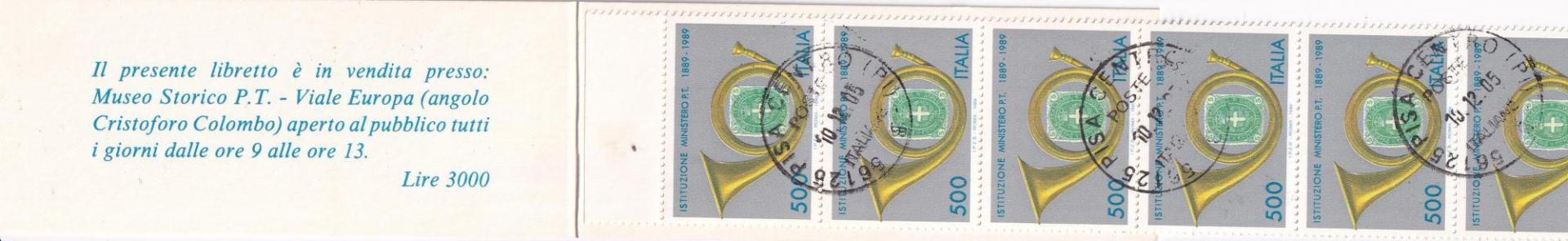 Libretto Italia Anno 1989 Centenario istituzione Ministero Poste e Telegrafi (Lb n. 12) con Annullo ordinario
