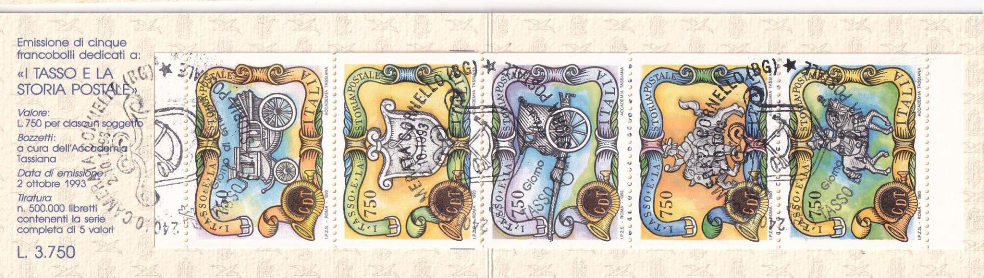 Libretto Italia Anno 1993 I Tasso e la Storia postale (Lb n. 14) con Annullo speciale