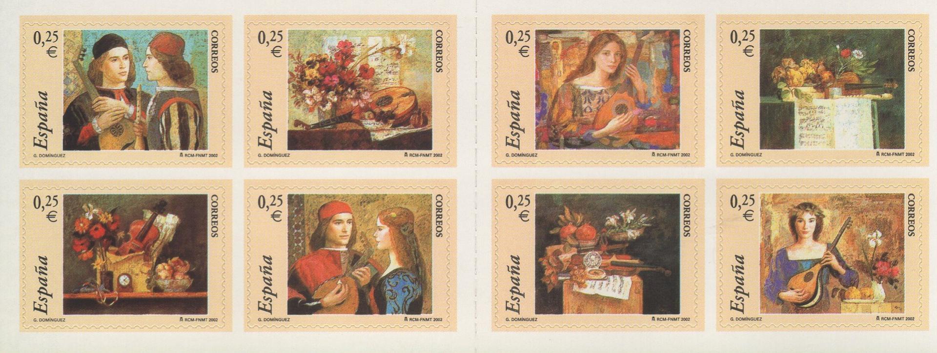 Libretto Spagna Anno 2002 La Musica Dettagli e opere del pittore Goyo Dominiquez Autoadesivi (Lb 3507)