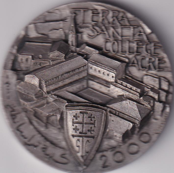 Medaglia Terra Santa College Acre Visita anno 2000 – Diam. 60 metallo bianco Opus CDF Italia